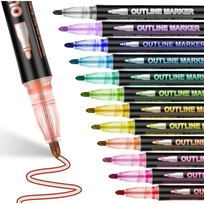 Marcadores de Contorno de 24 colores son la herramienta creativa que estabas buscando. Gracias a su efecto doble tono (color + contorno metálico), tus proyectos destacarán como nunca antes. Perfectos para scrapbooking, lettering, decoración, tarjetas y mucho más.